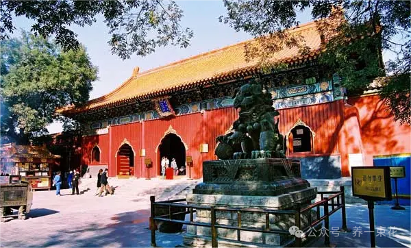 In the 32nd year of the Kangxi Emperor’s reign, (Yonghegong) became the residence of the Prince Fourth, Yinzhen. In 1983, it was designated as a national key temple of Han Buddhism by the State Council. The (Zhaotaimen) gate, Bell Tower, Drum Tower, (Yonghemen) gate, (Yonghegong), Lecture Hall, and Esoteric Buddhism Hall present the standard layout of the “seven halls and pagodas” style found in Chinese Buddhist temples.
