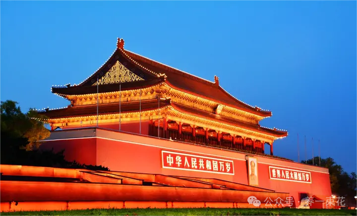 After the flag-lowering ceremony ended, I followed the crowd to the side near the (National Museum of China), where I saw the nighttime view of (Tian’anmen) and (Chang’an Avenue).