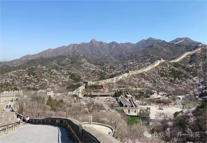 “He who has never been to the Great Wall is not a true man.” The Great Wall in spring is also vibrant with life, covered in blooming apricot blossoms – a truly beautiful sight.